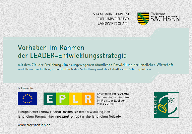 Das Vorhaben wird im Rahmen der LEADER-Entwicklungsstrategie mit 60 Prozent aus dem europäischen Entwicklungsprogramm für den ländlichen Raum im Freistaat Sachsen 2014 - 2020 (EPLR) gefördert.