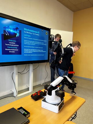 Der erste Austausch zur Planung des AnkerGlasZentrums fand am 20. Januar 2023 in der Freien Oberschule Bernsdorf mit Teilnehmern aus Wirtschaft, Wissenschaft, Bildung und Institutionen statt. Impulsvorträge des Bürgermeisters Harry Habel, der Fraunhofer IMW-Wissenschaftler Tim Hädicke und Julian Heinrich vom Zentrum Mittelstand Digital WertNetzWerke und vom innovativen Gründer der Firma Vendex, Manuel Dudczig, gaben erste Anregungen für einen themenbezogenen Diskurs in den sich anschließenden drei Werkstatträumen. Ansprüche an moderne Lern-, Arbeits- und Experimentierräume und an Möglichkeiten ge-nerationenübergreifender Begegnung waren die drei aufgerufenen Themenkreise.